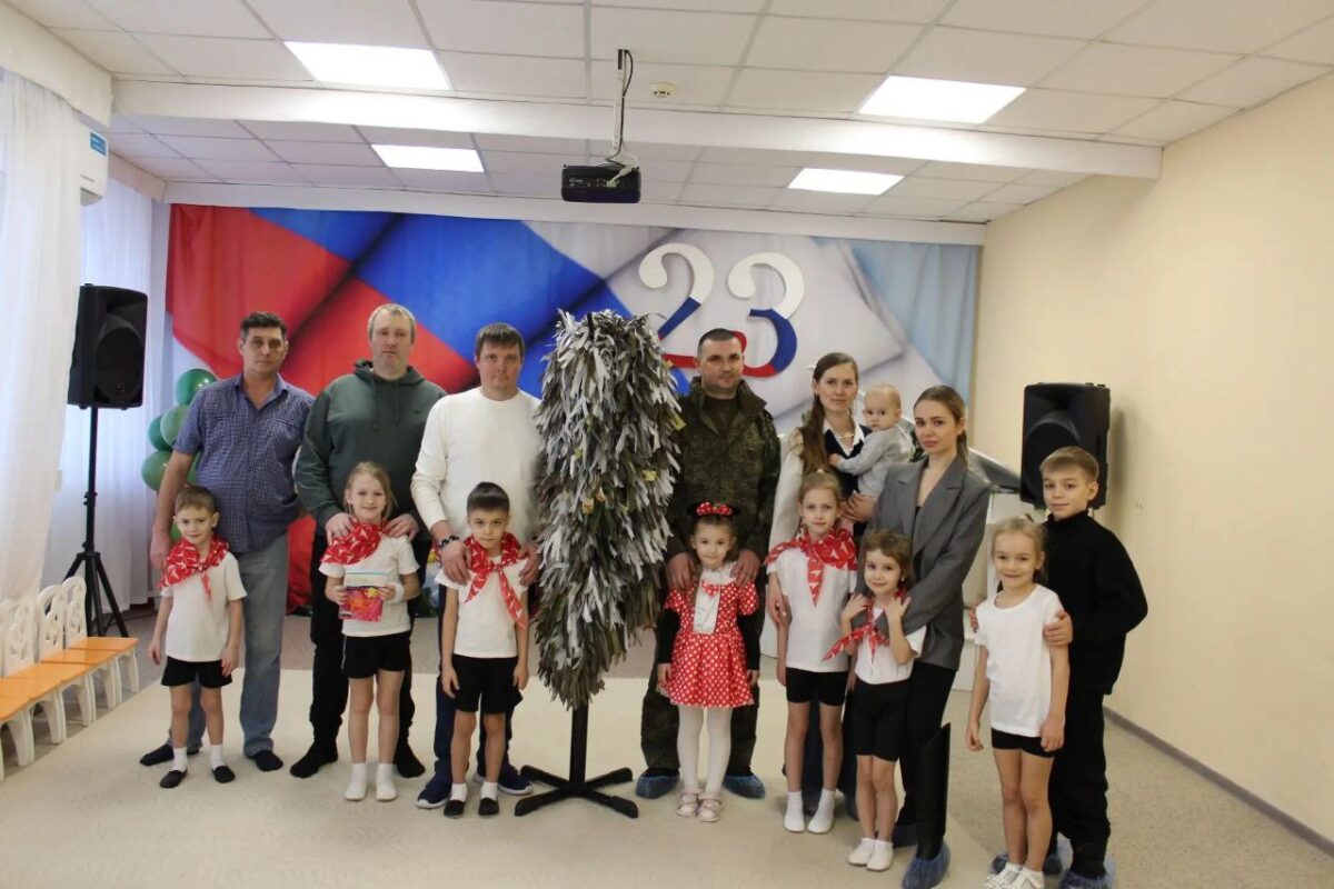 В рамках акции «Добрая мастерская Первых» активисты первичного отделения Движения Первых детского сада № 26 провели значимое мероприятие с участием родителей, детей и сотрудников. Они сплели маскировочный костюм «Леший», вложив в него теплые пожелания.